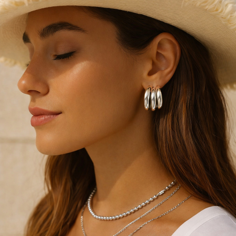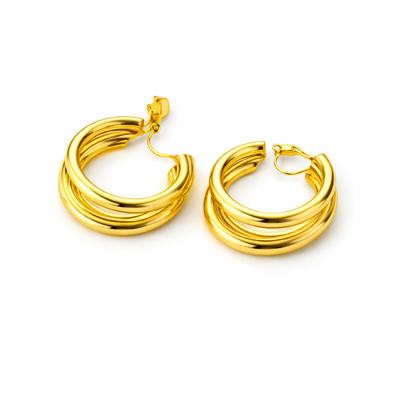 Artikelnummer: CL - 008DDeze trendy Clip Oorbellen Triple Bar zijn echte eyecatchers voor elke outfit. Het stijlvolle ontwerp bestaat uit drie grote, naast elkaar geplaatste ringen, verkrijgbaar in goudkleurig en zilverkleurig. Dankzij de handige clipsluiting kun je ze gemakkelijk dragen zonder gaatjes. Combineer ze met een mooie schakelketting of mix & match sieraden uit onze collectie voor een complete look. Comfortabel, opvallend en perfect geschikt om jouw stijl naar een hoger niveau te tillen.