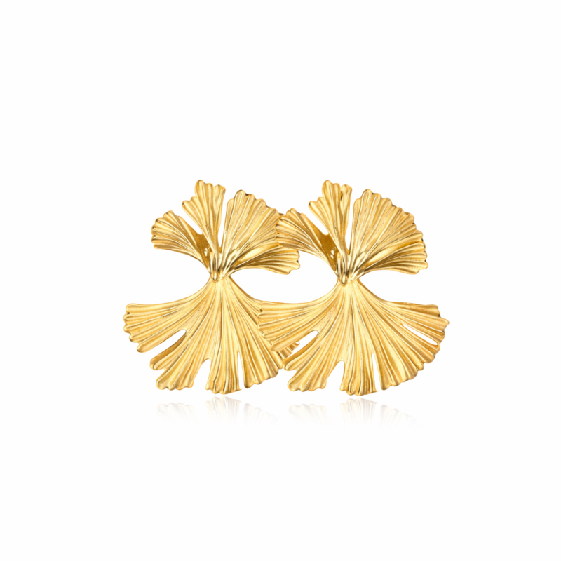 Deze goudkleurige statement clipoorbellen met waaierblad design zijn een echte blikvanger. Het organische bladmotief zorgt voor een elegante en luxe uitstraling die perfect past bij zowel alledaagse outfits als feestelijke gelegenheden. Dankzij het clipmechanisme zijn deze clipoorbellen ideaal voor vrouwen zonder gaatjes, terwijl ze comfortabel blijven zitten. Het stijlvolle design maakt deze oorbellen perfect voor een Ibiza vibe, een chique diner of een zomerse look. Een must-have voor liefhebbers van opvallende clipoorbellen met een modieuze uitstraling.