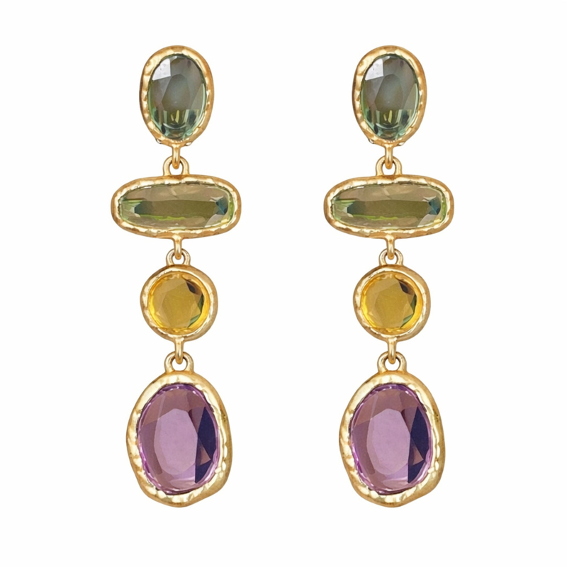 Deze goudkleurige clipoorbellen met gekleurde stenen zijn een echte eyecatcher voor elke gelegenheid. De clipoorbellen bestaan uit meerdere facetgeslepen stenen in harmonieuze tinten, waardoor ze een speels maar stijlvol effect geven. Dankzij het clipsysteem zijn ze ideaal voor wie geen gaatjes heeft, maar toch statement oorbellen wil dragen. De goudkleurige afwerking geeft de oorbellen een luxe uitstraling en maakt ze perfect te combineren met zowel casual als chique outfits. Een comfortabele en modieuze keuze voor elke sieradenliefhebber.