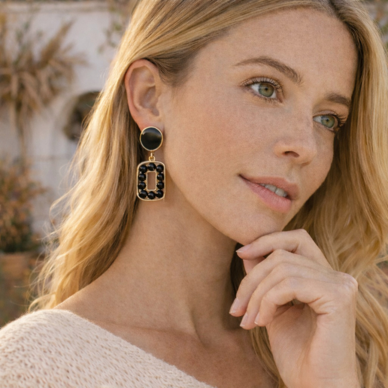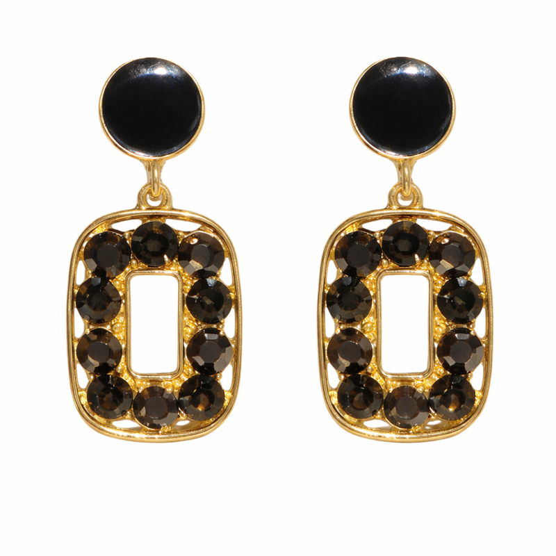 Deze statement clipoorbellen met zwarte stenen zijn een stijlvolle toevoeging aan elke sieradencollectie. De clipoorbellen hebben een compact, rechthoekig design met een open midden en zijn rondom afgewerkt met fonkelende zwarte stenen. De goudkleurige rand zorgt voor een luxe uitstraling, terwijl het comfortabele clipsysteem ervoor zorgt dat de oorbellen prettig blijven zitten zonder gaatjes. Door het tijdloze ontwerp zijn deze clipoorbellen perfect te dragen bij zowel een dagelijkse outfit als een avondlook. Ideaal voor wie houdt van elegante statement oorbellen met karakter.