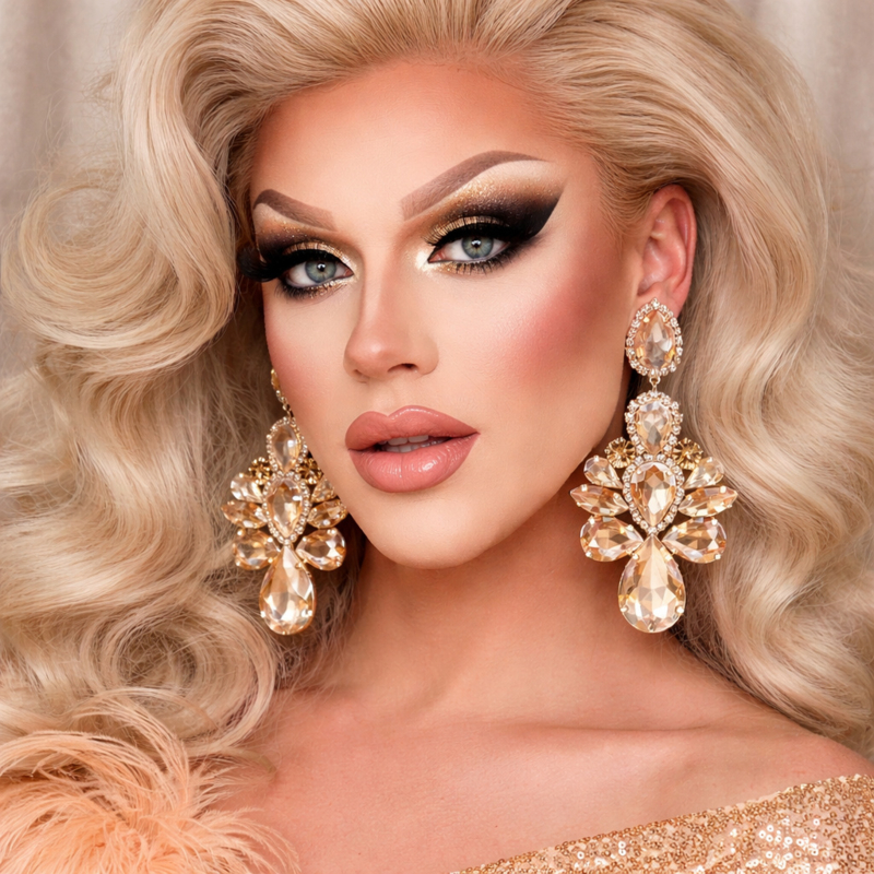 Deze opvallende clipoorbellen met champagnekleurige strass stenen zijn echte statement oorbellen voor een feestelijke look. De druppelvormige kristallen en fonkelende details zorgen voor een luxe uitstraling, terwijl de goudkleurige afwerking het geheel extra warmte geeft. Dankzij de comfortabele clip sluiting draag je deze oorbellen zonder gaatjes moeiteloos de hele dag of avond. Perfect voor een bruiloft, gala, diner of party. Een glamour item uit de sieraden collectie van Marody.