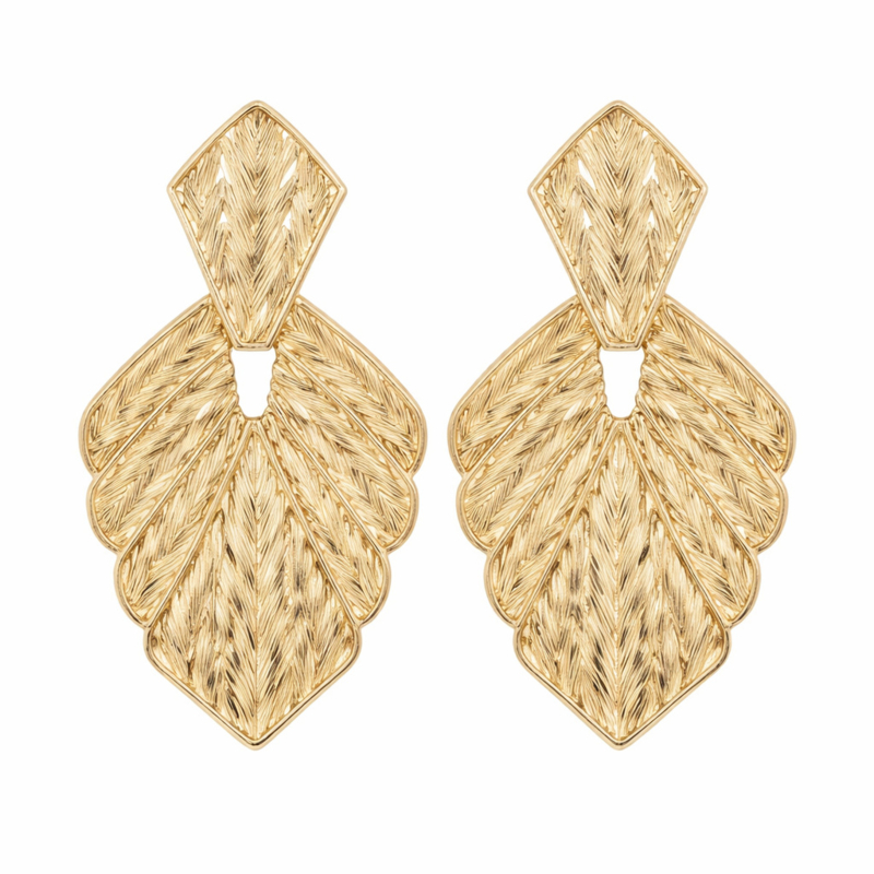 Maak een krachtig statement met deze goudkleurige clip oorbellen met blad structuur. De opvallende vorm en verfijnde details zorgen voor een luxe en expressieve uitstraling die direct in het oog springt. Perfect voor wie houdt van grote oorbellen met een glam touch, geïnspireerd op stijlen uit de fashion- en dragwereld. Deze clipoorbellen zijn comfortabel te dragen zonder gaatjes en ideaal voor feestjes, festivals of een uitgesproken look. Durf te stralen en laat jouw stijl spreken.