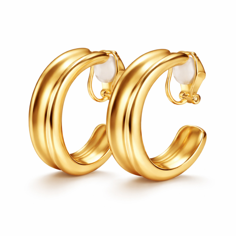 Artikelnummer: CL - 007HDeze goudkleurige clipoorbellen in oorring stijl zijn dé perfecte mix van basic en statement. De ronde, iets dikkere vorm geeft een luxe uitstraling, terwijl de clip sluiting zorgt voor optimaal draagcomfort – ook zonder gaatjes. Ideaal voor dagelijks gebruik of een stijlvolle Ibiza look. Deze clip oorbellen zijn lichtgewicht en blijven goed zitten. Combineer ze met andere sieraden voor een trendy earparty of draag ze solo voor een minimalistische look.