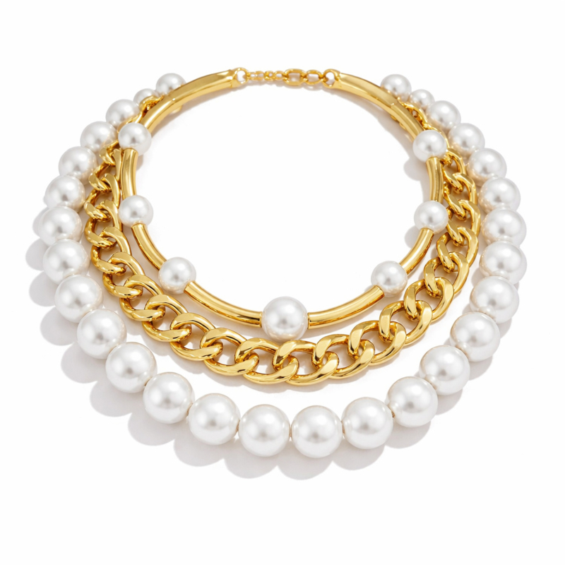 Deze goudkleurige statement ketting combineert het beste van twee werelden: elegante parels en een stoere schakelketting. De gelaagde look zorgt direct voor een opvallende en stijlvolle uitstraling. Perfect om je outfit een chique twist te geven, of je nu gaat voor casual chic of een avondlook. De ketting valt mooi rond de hals en is dé eyecatcher voor elke sieradenliefhebber. Combineer met andere sieraden of draag ‘m solo voor maximale impact.