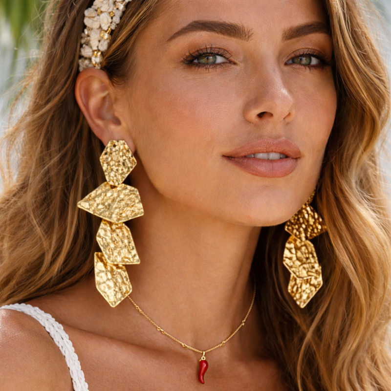 Deze goudkleurige ketting met rode chili hanger geeft jouw look direct een speelse en trendy touch. De fijne ketting met subtiele details zorgt voor een elegante uitstraling, terwijl de opvallende chili hanger een echte eyecatcher is. Perfect voor een Ibiza vibe of om je outfit net dat beetje extra te geven. Draag deze ketting solo voor een minimalistische look of combineer met meerdere kettingen voor een trendy layered effect.