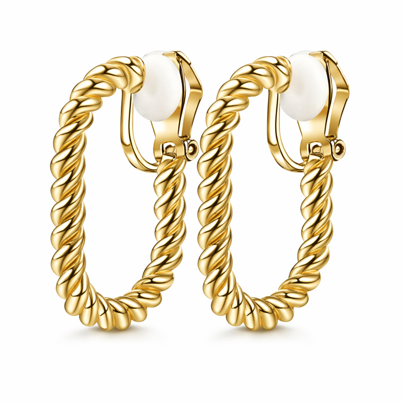 Deze goudkleurige clipoorbellen met gevlochten structuur zijn echte eyecatchers. De ovale vorm en het gedraaide design geven een speelse, maar stijlvolle uitstraling die perfect past bij zowel een dagelijkse look als een feestelijke outfit. Dankzij de clip sluiting zijn deze oorbellen ideaal als je geen gaatjes hebt, terwijl ze toch ogen als echte oorringen. Lichtgewicht en comfortabel om te dragen, met een luxe uitstraling die je look direct compleet maakt.