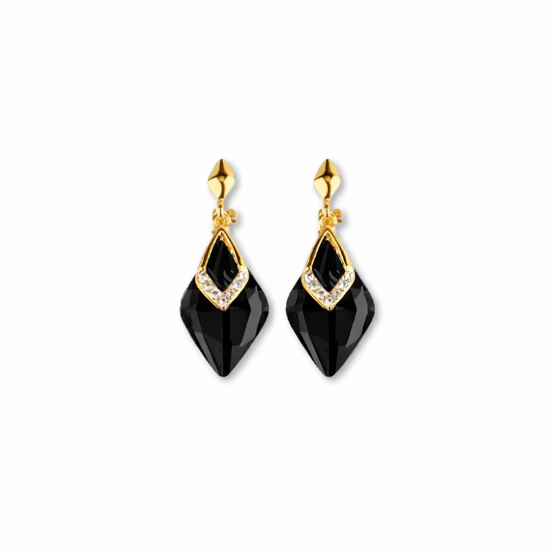 Clip oorbellen glamourZilverkleurige clip oorbellen met ornamentale details en zwarte kristal drop. Comfortabel zonder gaatjes en perfect als elegant statement.