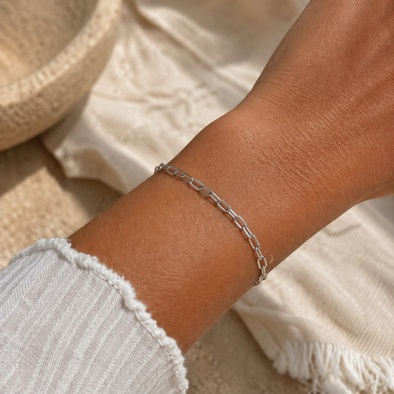 Voeg een vleugje moderne elegantie toe aan je look met deze zilverkleurige schakelarmband. Vervaardigd uit duurzaam roestvrij staal, combineert dit sieraad moeiteloos met andere accessoires in een goudkleurige of gekleurde afwerking voor een opvallende layered look. Deze prachtige armband is een must-have voor elke sieradencollectie en zorgt ervoor dat jij de show steelt. Let op: meet voor bestelling altijd de omtrek van je pols, zodat de armband perfect past.